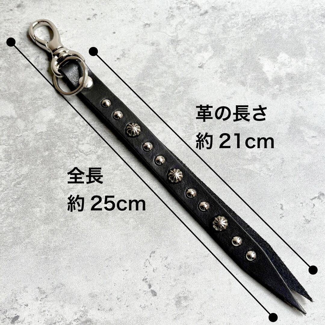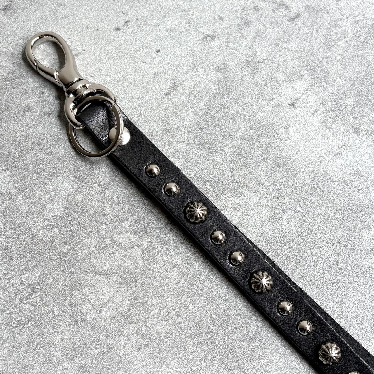 栃木レザーにアメリカ製のスタッズを打ち込んだロングキーホルダー。