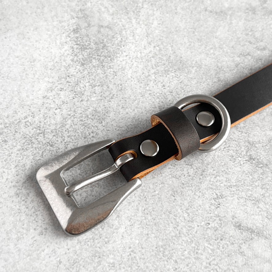 バックルとループのリングは国産の真鍮バックルを使用。重厚感と存在感が皮と共に表情を深めています。
