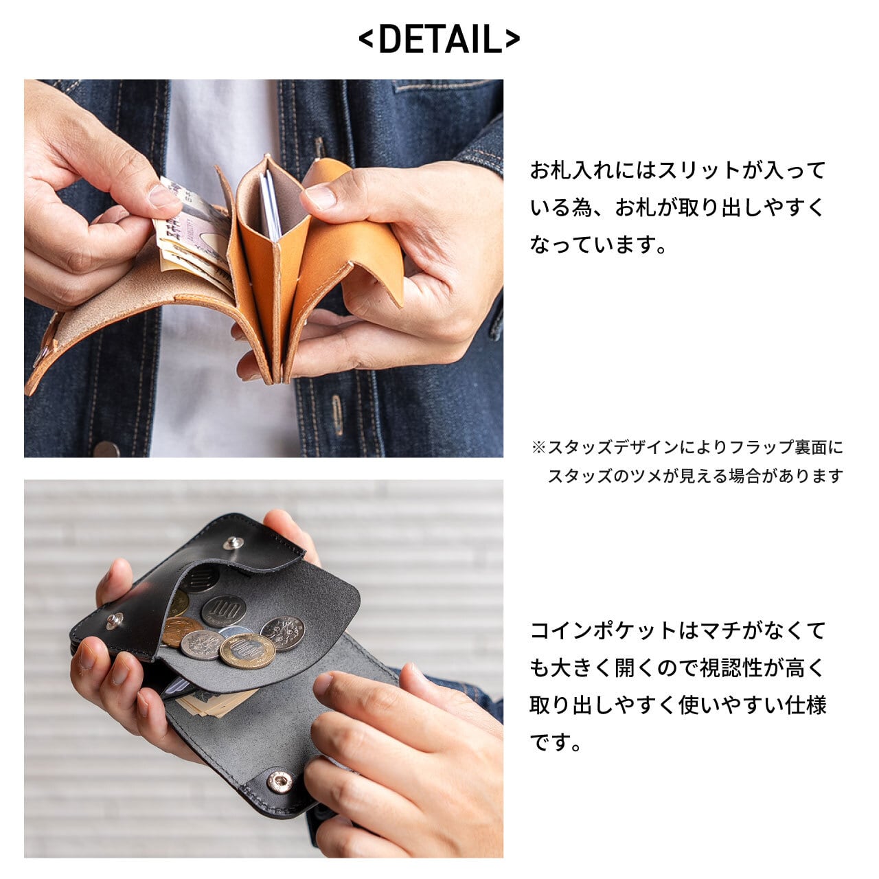 紙幣は約10枚・カードは約7枚収納可能。日常使いはもちろん、必要なものだけを持ち歩くミニマルなスタイルを求める方にも最適な設計です。