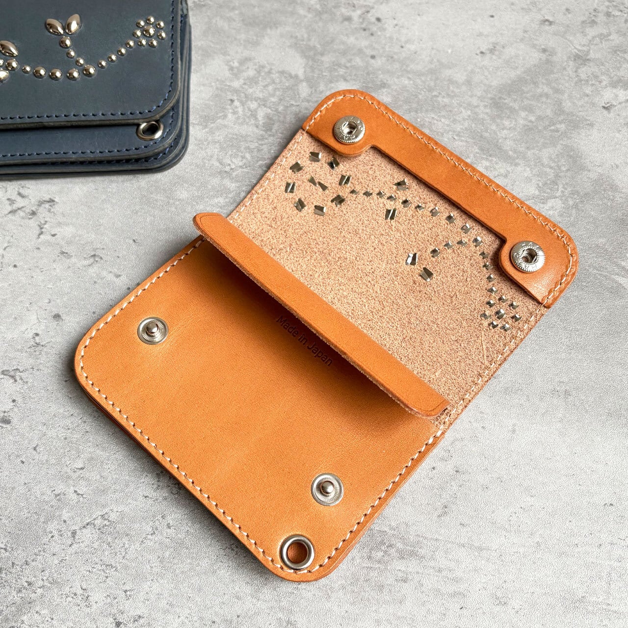 栃木レザー フラワースタッズ ショートトラッカーウォレット 6色展開 日本製 Made in Japan [WL007-st172]※メール便 送料無料
