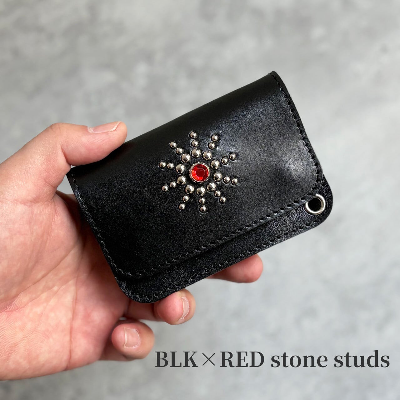 栃木レザー バーストスタッズ ショートトラッカーウォレット 6色展開 日本製 Made in Japan [WL007-st14]※メール便 送料無料