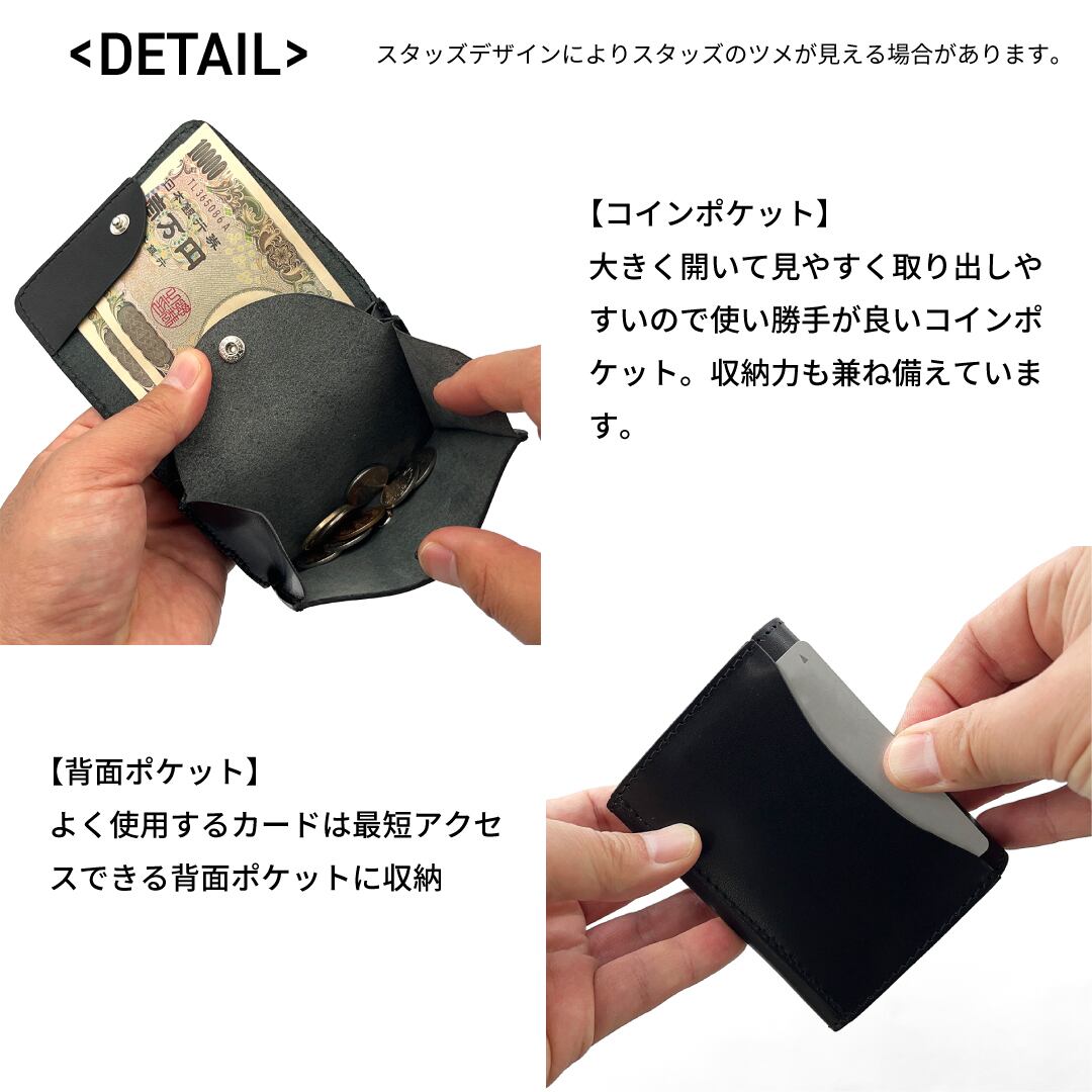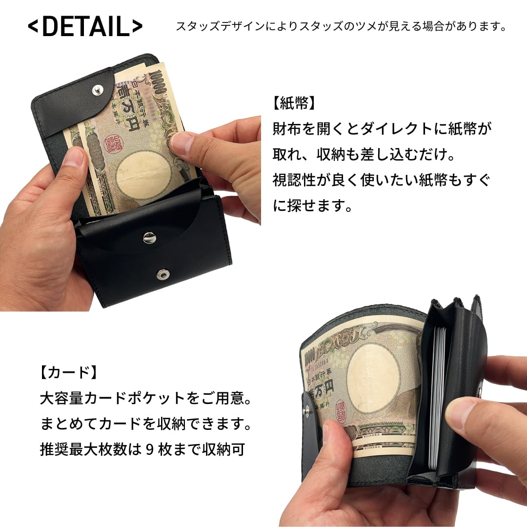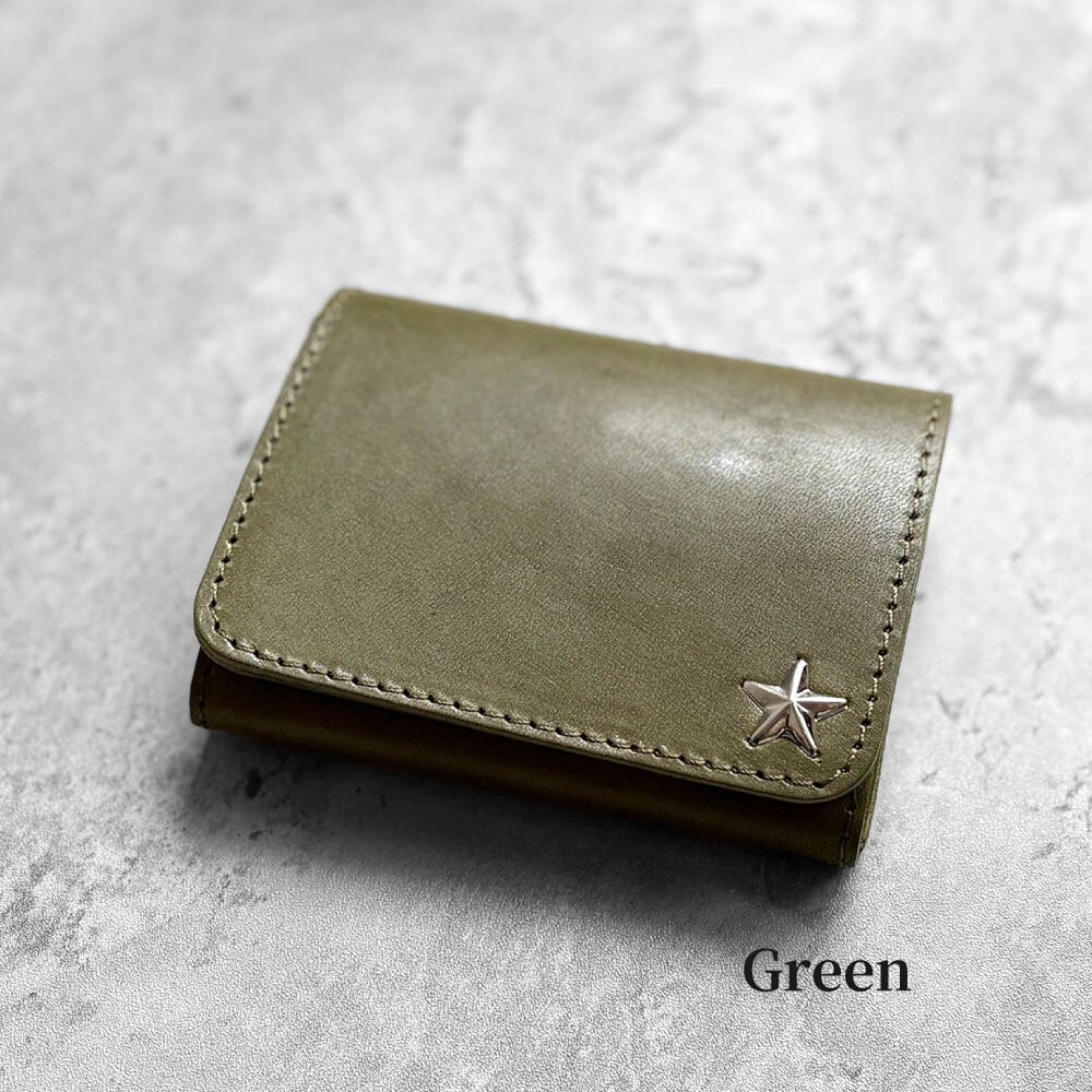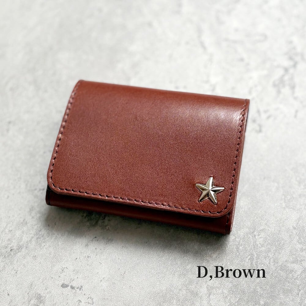 栃木レザー スタースタッズ コンパクト財布 5色展開 日本製 Made in Japan [WL001-st34]※メール便 送料無料