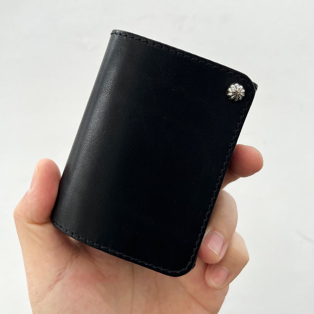 栃木レザー社のベジタブルタンニンレザーを使用したコンパクトウォレットにアメリカ製のスタッズをワンポイントカスタムしました。
