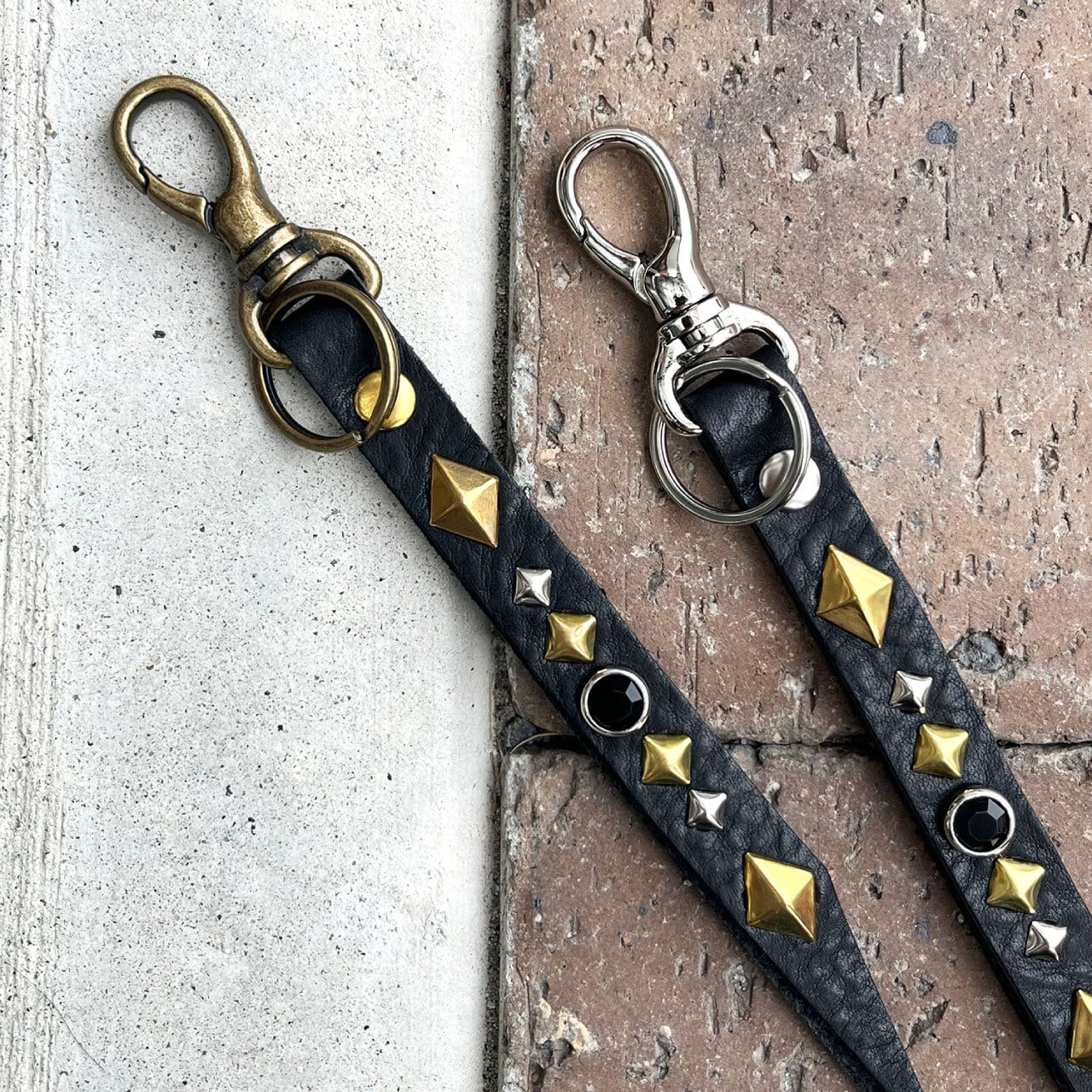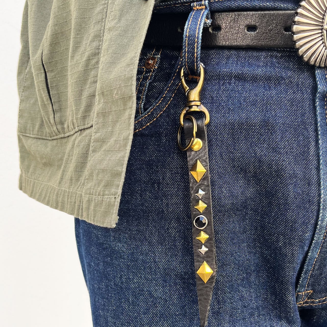 栃木レザーにアメリカ製のスタッズを打ち込んだキーホルダー。