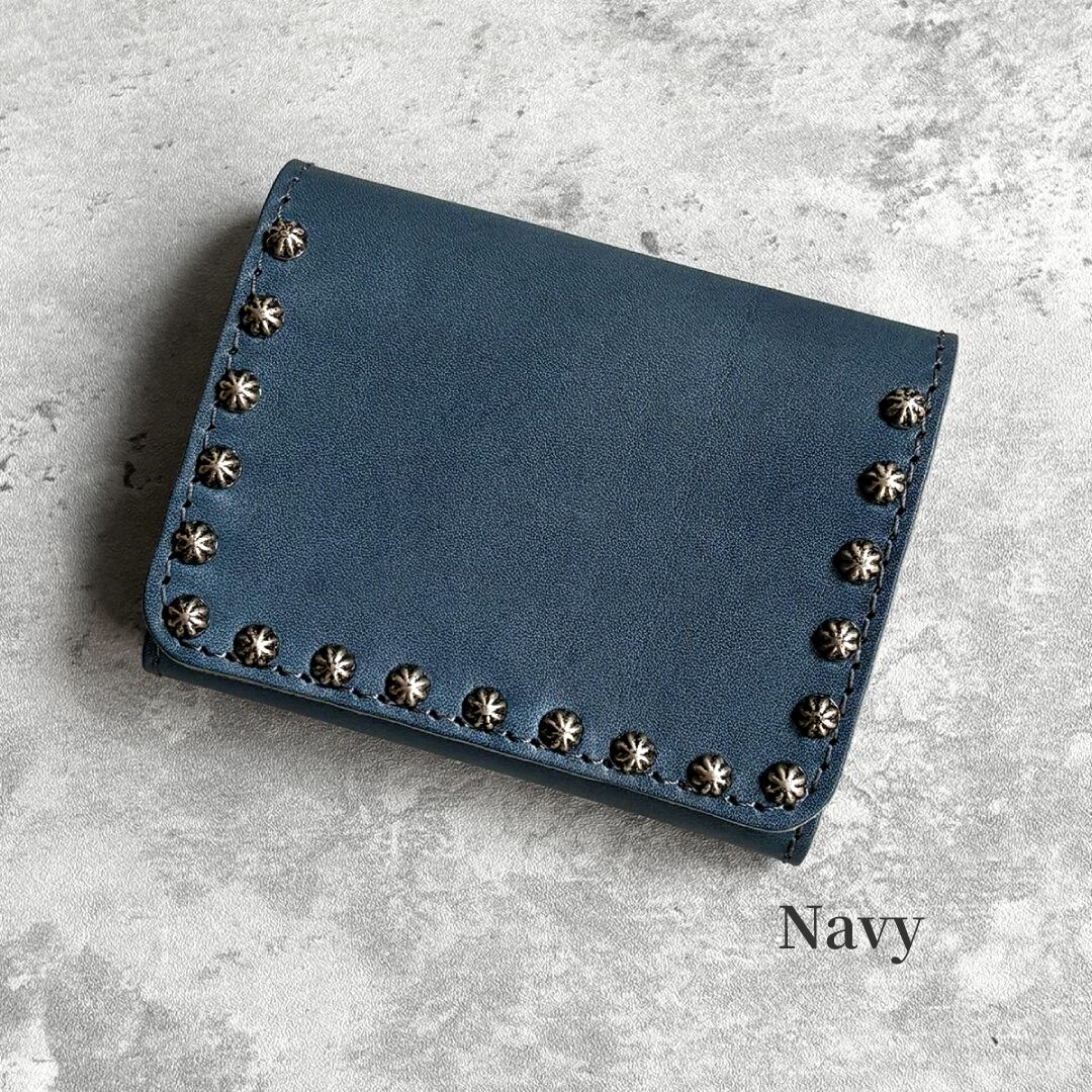 栃木レザー スタッズ コンパクト財布 5色展開 日本製 Made in Japan [WL001-st8]※メール便 送料無料